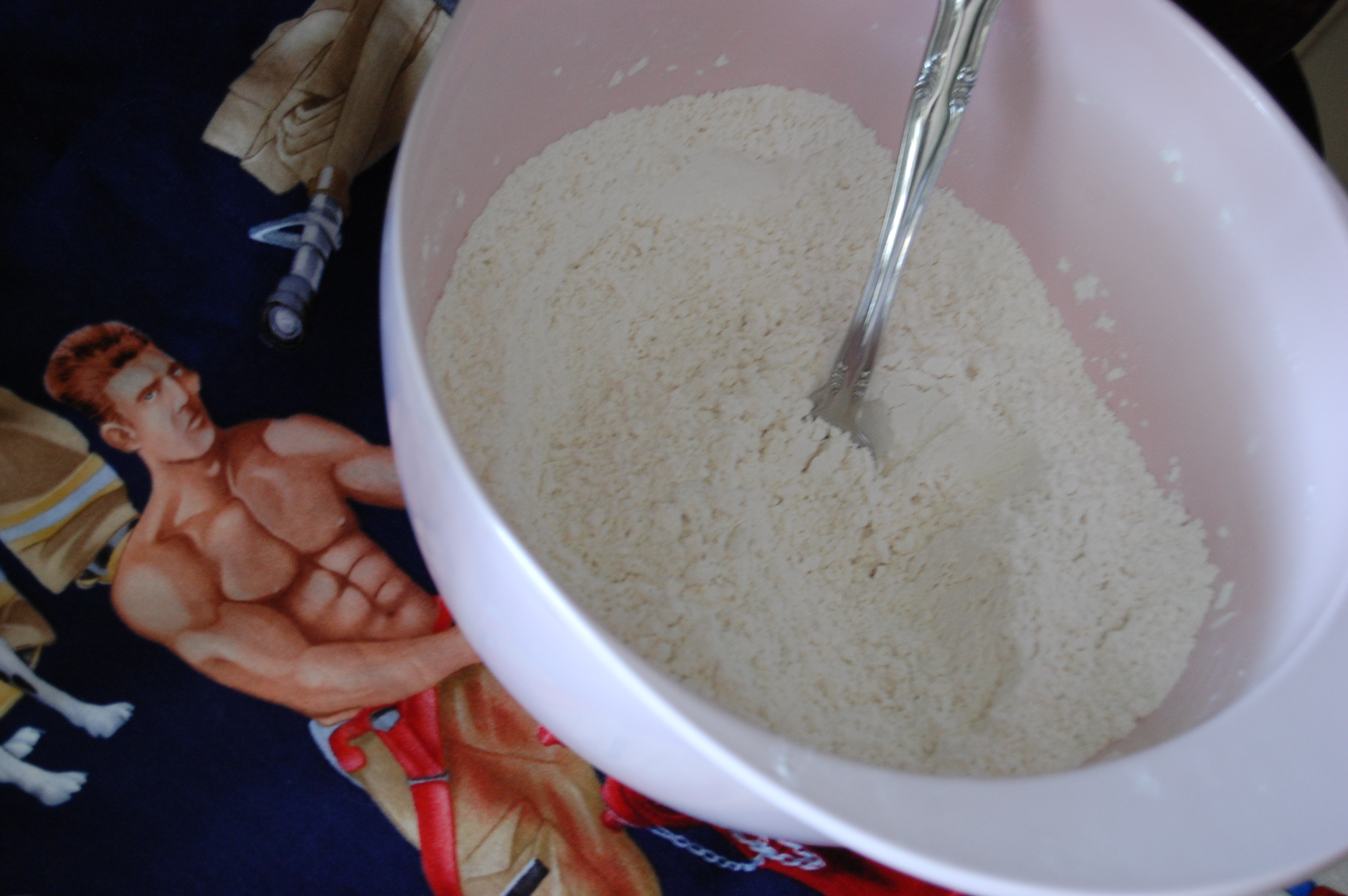 Flour mixture on the topless fireman apron 🙂