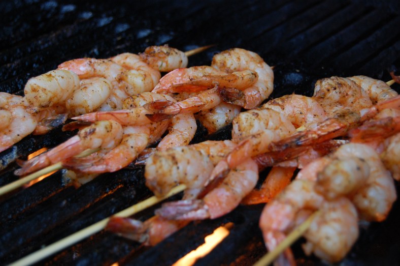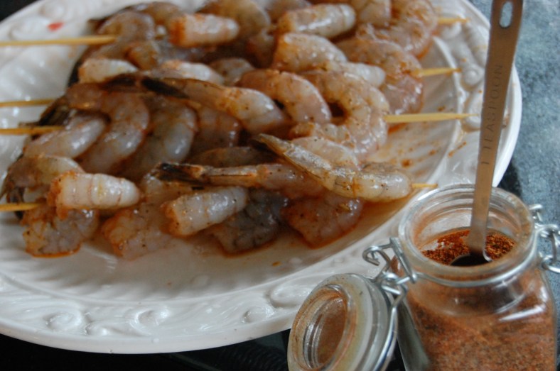 Marinate the shrimp for an hour or so with the olive oil and your favorite creole seasoning before you skewer them.  A great tip if you use wood skewers is to soak them in water for a few minutes before you put food on them, this will make sure the skewers don’t burn on the grill.