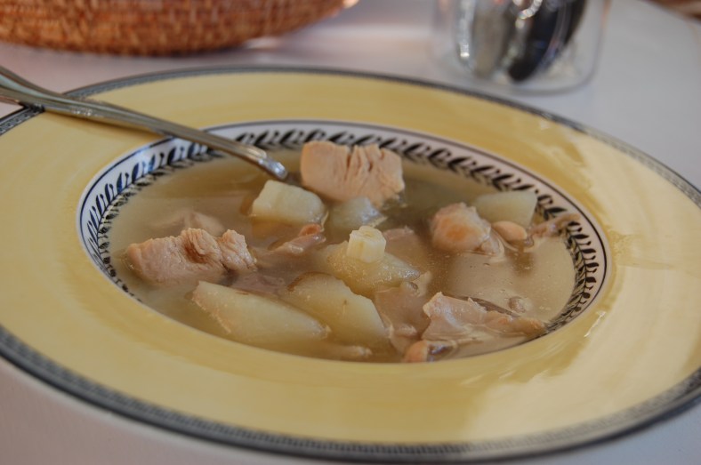 Upon my trip down memory lane, I recalled one of my favorite family meals- one that exemplified a “Family Meal” in a kitchen.  There are a few dishes that each of us shared frequently when it was our turn to cook for the kitchen, this one coworker had two of my favorites- Strawberry Cinnamon Milkshakes and Garlic Chicken Potato Soup.  Jose would make this soup every time that one of us walked into work with a sniffle or a cough- it was the “Ultimate Cold Remedy”.   Though Jose left many years ago, his Milkshakes and Garlic Chicken Soup lived on!