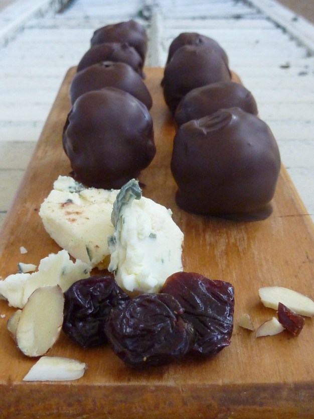 I am a curious chef- I often wonder …Can this work? …Will this taste good?  What if…?  Streeeeeetch the imagination…..!  That’s how good, better, and finally best comes around.   I saw Blue Cheese Truffles on a chocolatier’s website a few weeks ago and have not been able to let go.  Hmmm…sounds good… sounds gross…maybe…eh..