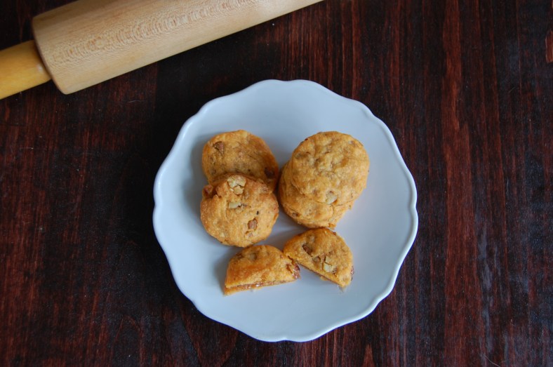 I saw the cookies first, and knew I had to make pimiento cheese so I could make the cookies.   I’m a sucker for crackers, crisps, biscuits, ect- especially when Sweet meets Savory!  These cookies are delicious- if you prefer substitute the strawberry preserve for another- raspberry or lingonberry would be great!  You could even use your basic grape jelly- who doesn’t love cheese and grapes!