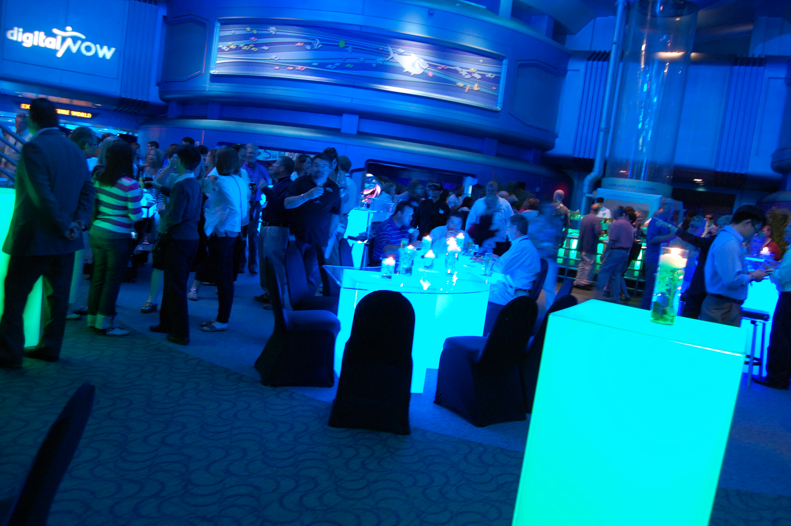 We have been busy at work the last week with 3 different Press Events, a 1000 or so Cheerleaders, and a technical driven event that we look forward to all year. The digitalNow Conference was held at Walt Disney World this week; which gave us a chance to push our creative minds. While the group spent most of their time at the Contemporary Resort, they did venture to the Parks for a night. The Living Seas at Epcot turned into a futuristic, creative, interactive dining room, where Entertainment, Bartenders, and Chefs spent the evening getting the chance to create magic.