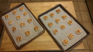 Once sufficiently chilled the pastry roll with be very firm to the touch, slice the roll in ¼” slices and place on baking sheet lined with parchment or silpat.