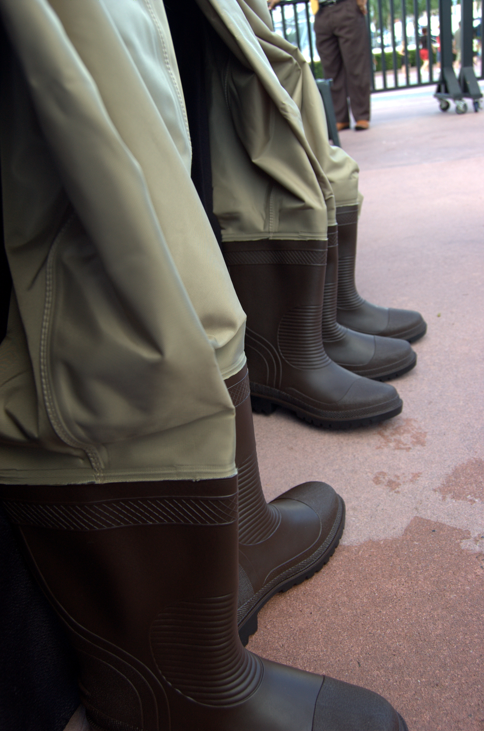 The waders were lined up for the guests to pull on before they jumped in the bog.