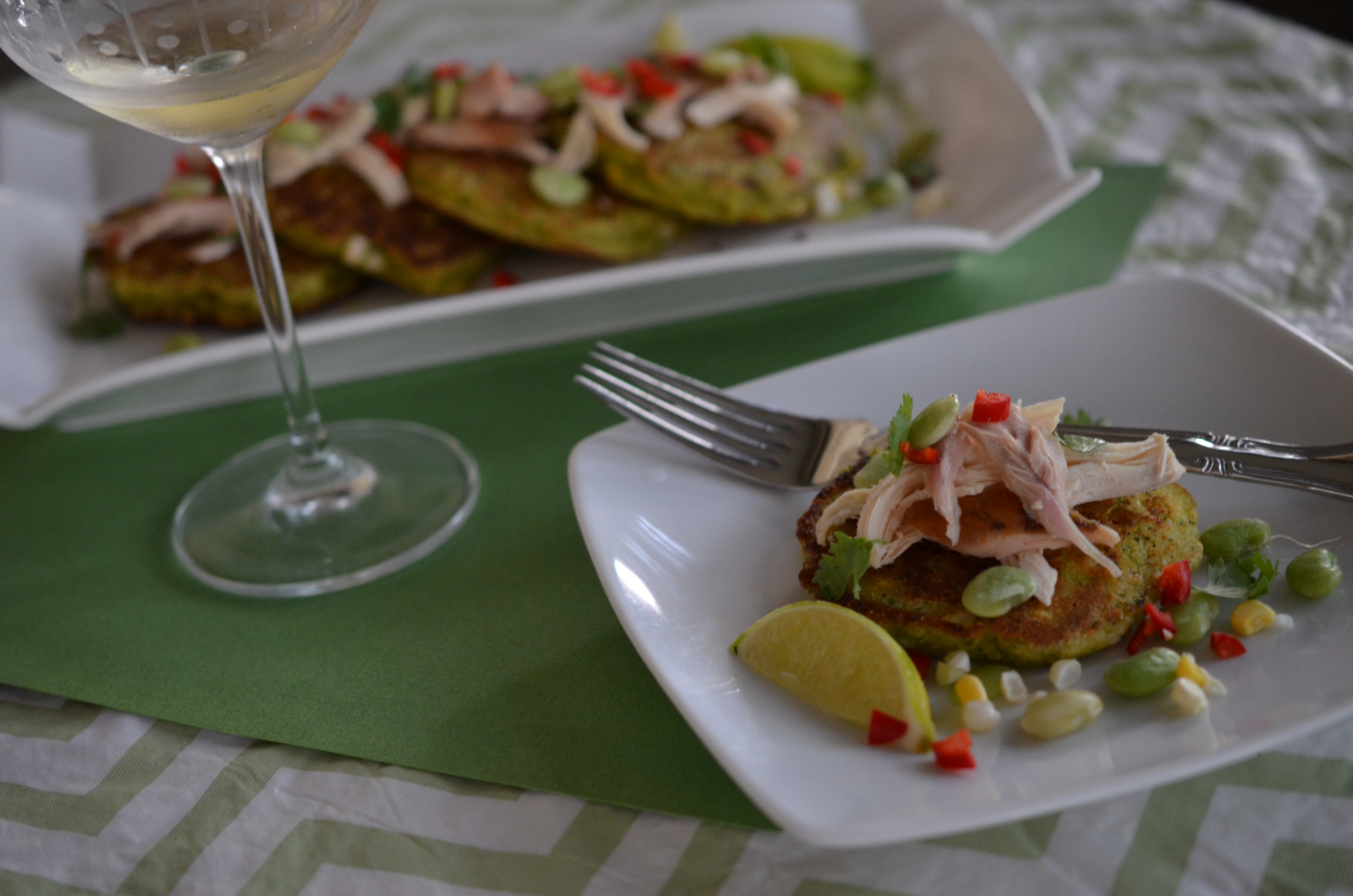 Maybe you can tell I like Southwest/Mexican food- Mexican Shrimp Ceviche, Mexican Corn and Poblano Chowder, Texas Caviar, Spanish Turkey Meatball Stew or even Peanut Butter Stuffed Jalapeños. Pretty much, if it has cilantro I am guaranteed to love it. My husband knows that after a bad day for me, chips and salsa are the best Band-Aid. The good kind of salsa, fresh loaded with cilantro with warm thin salted corn tortilla chips. So admittedly, I am a sucker when I see dishes with cilantro or Mexican/Latin flavor profiles. Enter these irresistible southwest spiced corn cakes.