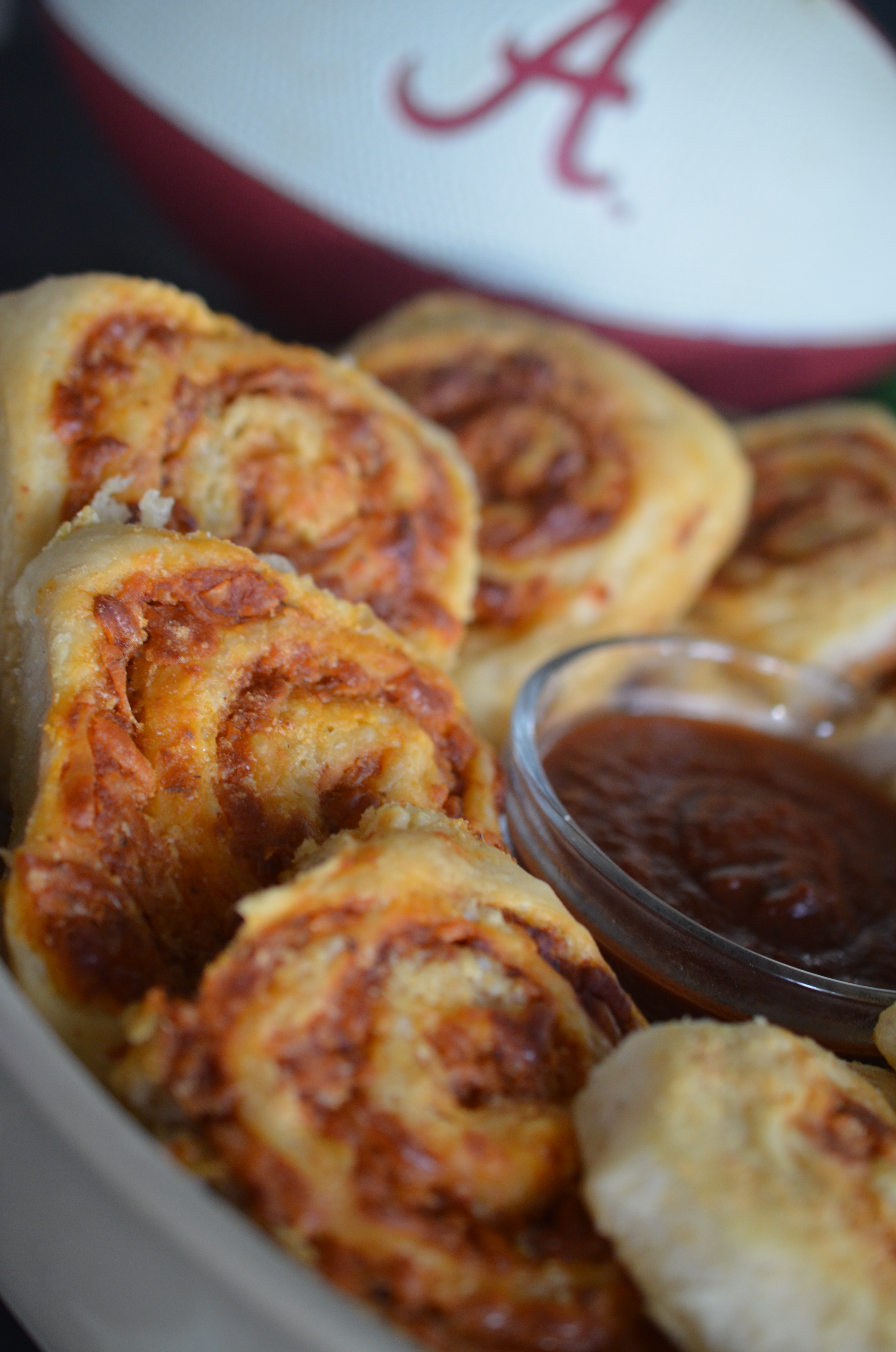 Serve warm either plain or with extra pizza sauce for dipping.  Reheat any leftovers in the same fashion you would with leftover pizzas. Or if you are taking to the tailgate party, wrap them in a sheet of foil and warm them on a low heat grill.