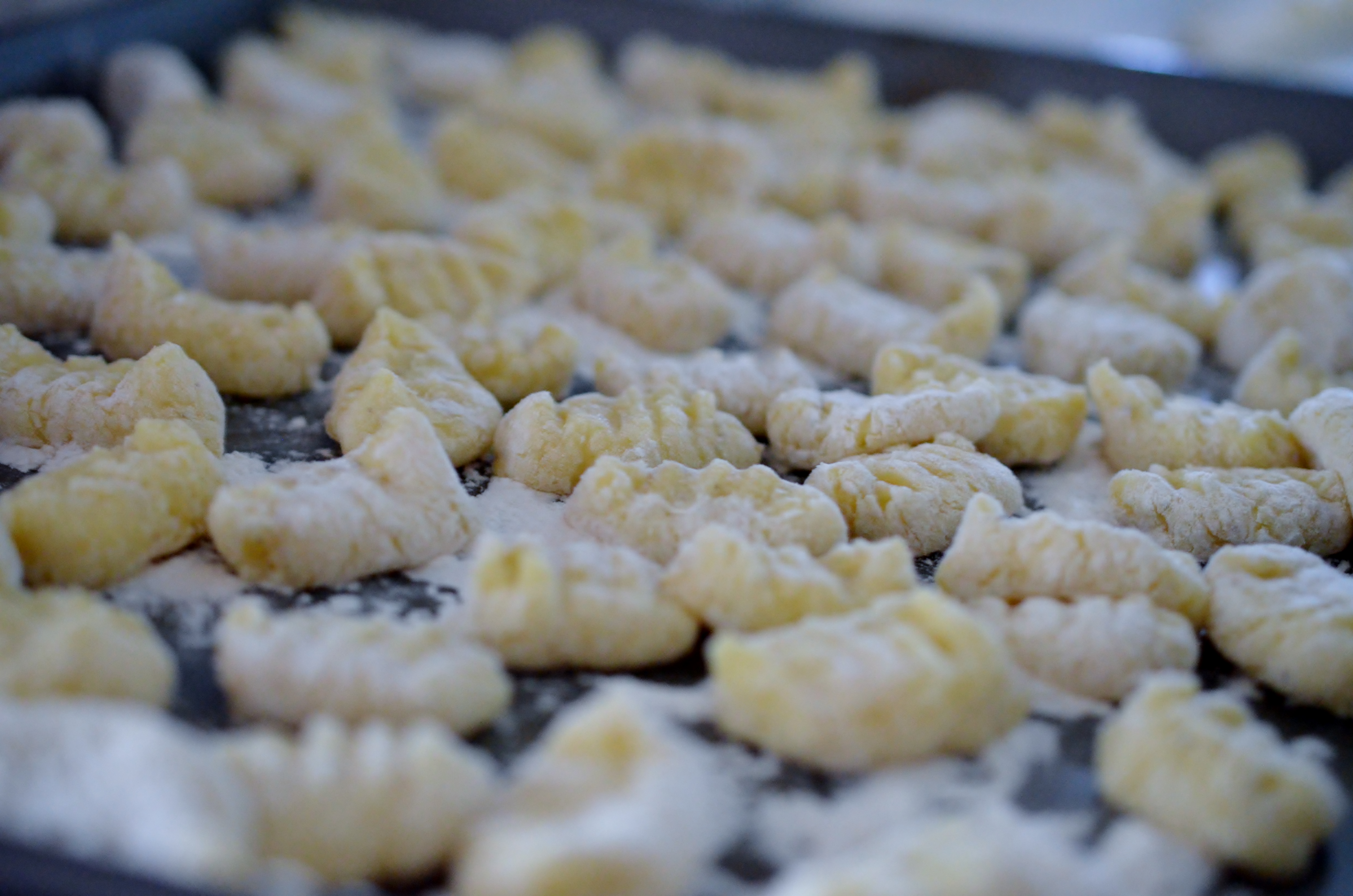 I have made gnocchi fresh a bunch of times and have found it really simple, you just have to be careful of over mixing the when you add the flour, like all dough’s.  I started off using this recipe from Michael Chiarello and now I am able to eyeball it.  Anytime I have the chance to make dough I am excited, it must be the get your hands dirty method involved!