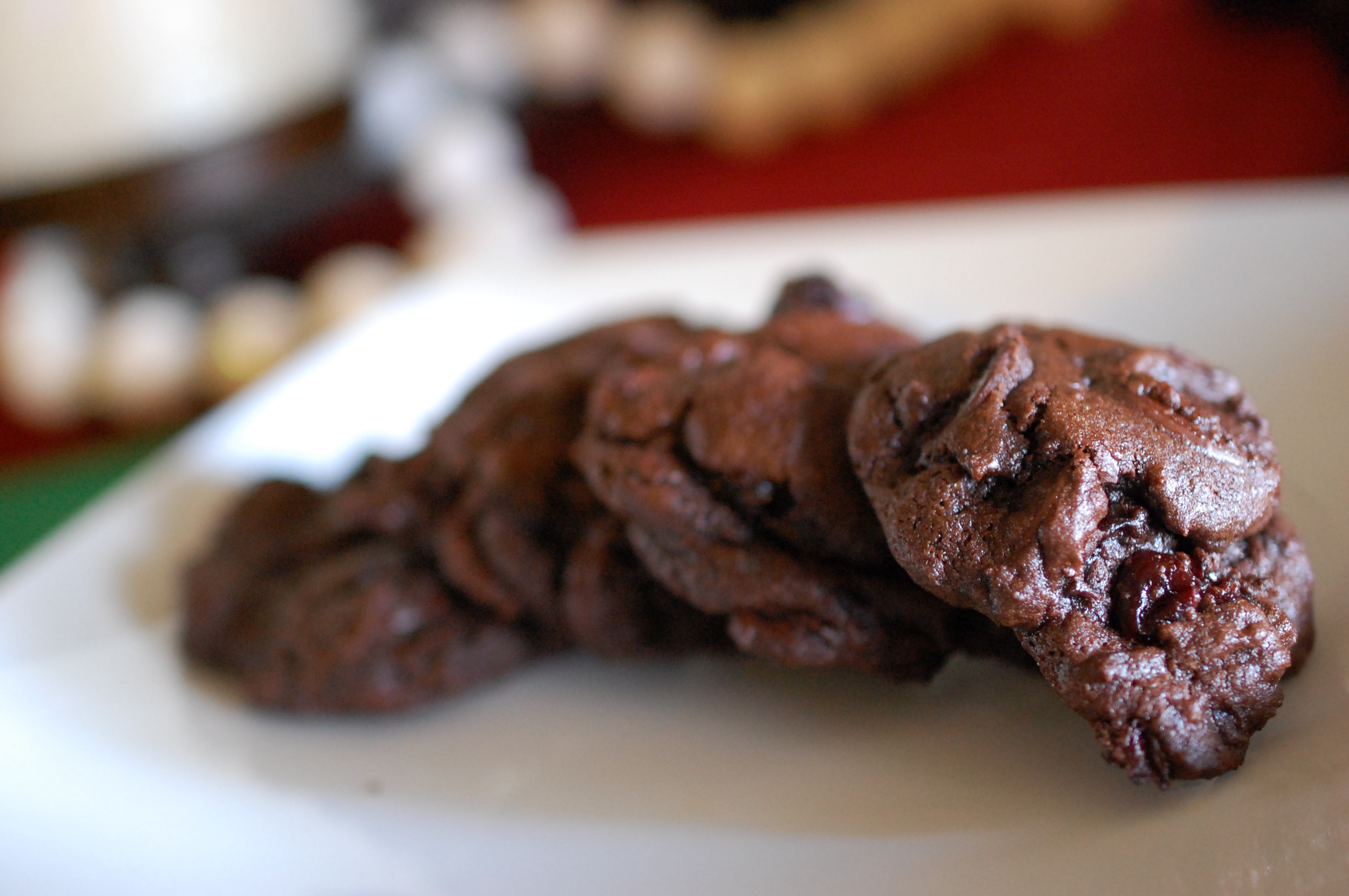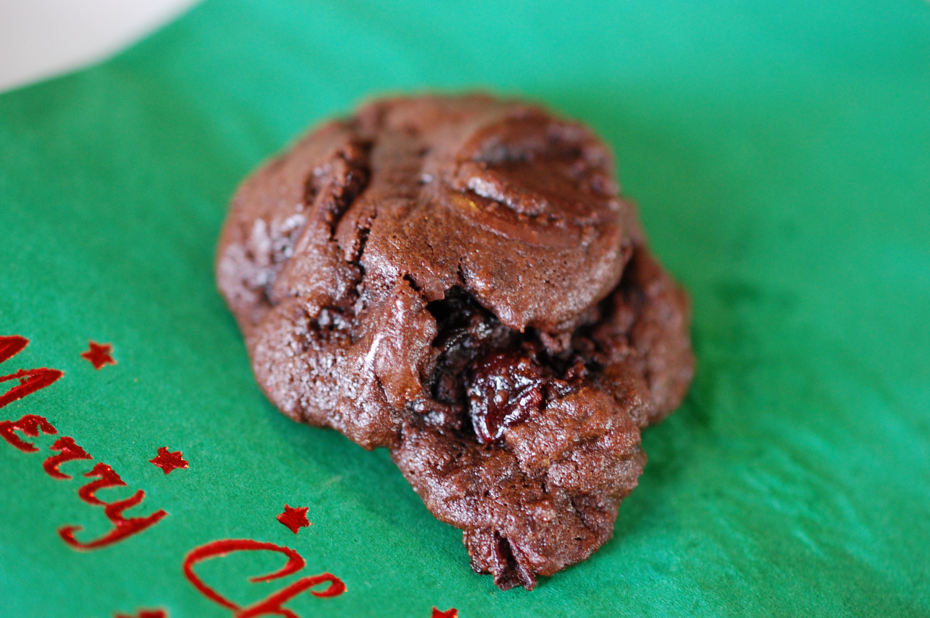 I recruited a few chefs that I work with to help me brainstorm what kind of cookie to make, the idea list got pretty long and I have a few of them planned in the future- but we finally landed on the perfect cookie to sip a glass of wine with.  Chocolate Cherry Cordial Cookies, made with port wine, 70% dark chocolate chunks and sun dried cherries.