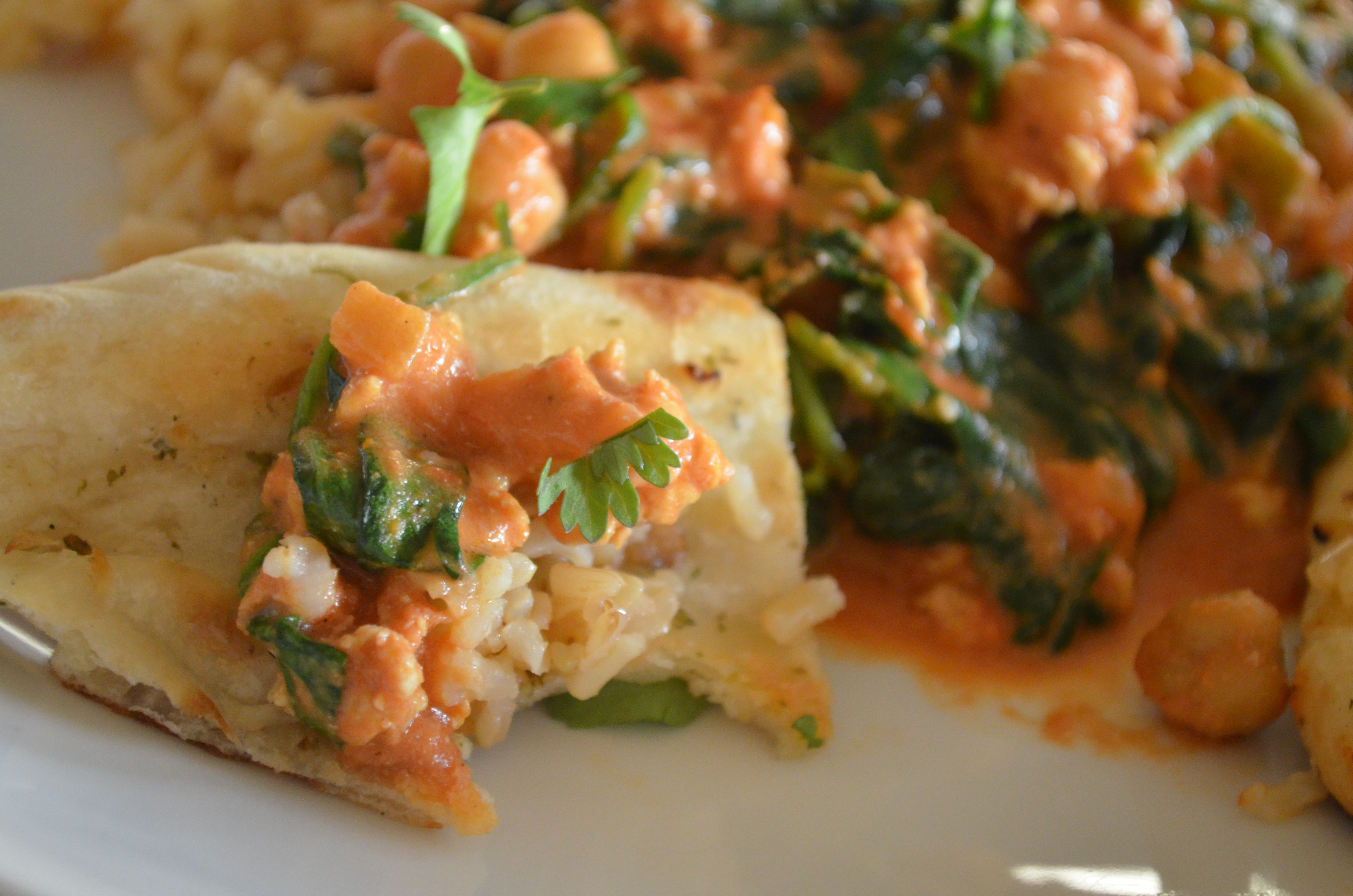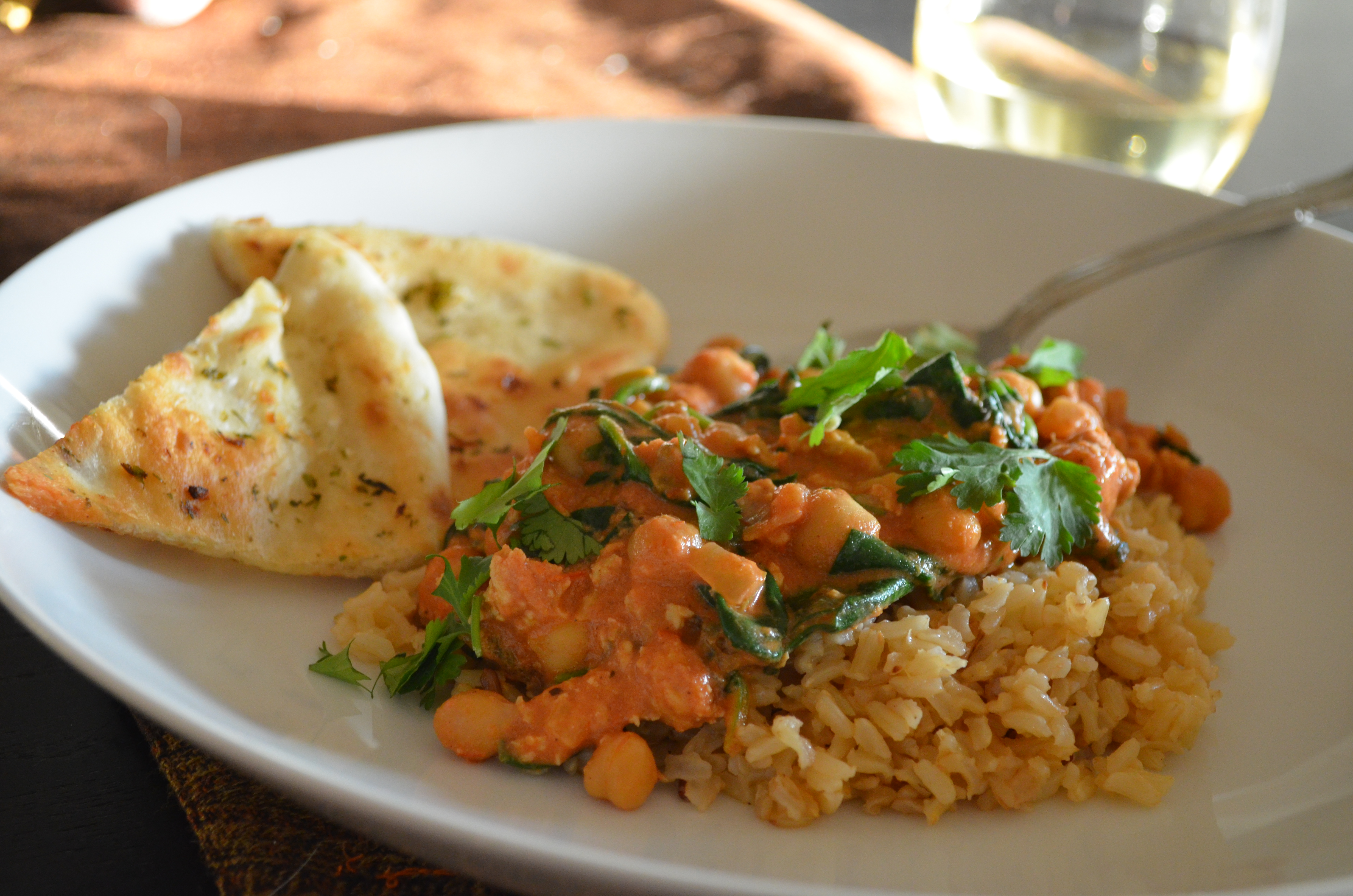 Place a heavy bottom large skillet over medium high heat and add 1 tablespoon oil. Add in the chicken strips and cook chicken until lightly browned, about 10 minutes. Turn the heat to medium low, and add in teaspoon garam masala and cayenne. Feel free to eliminate the cayenne or add more based on you heat preferences. Add the sauce into the skillet and simmer over medium low heat. The sauce will reduce and thicken as the chicken finishes cooking. When ready to serve stir in chopped cilantro as garnish.
